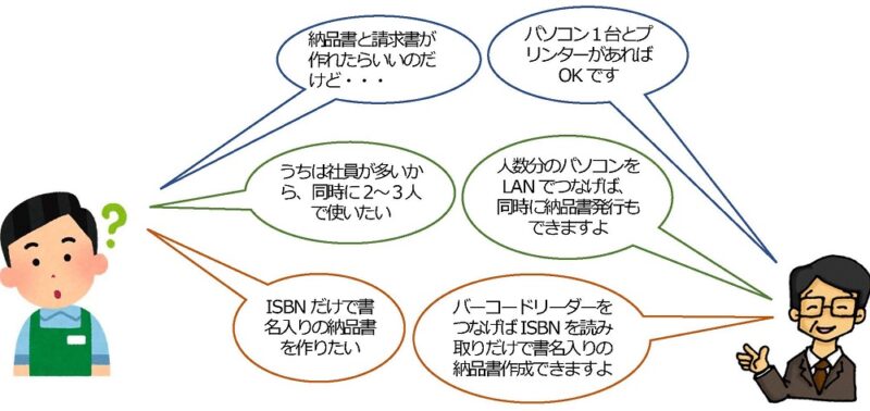 - 一般家庭や商店への配達だけでなく、学校や図書館・企業・官公庁などへの納品書を発行作成できます。