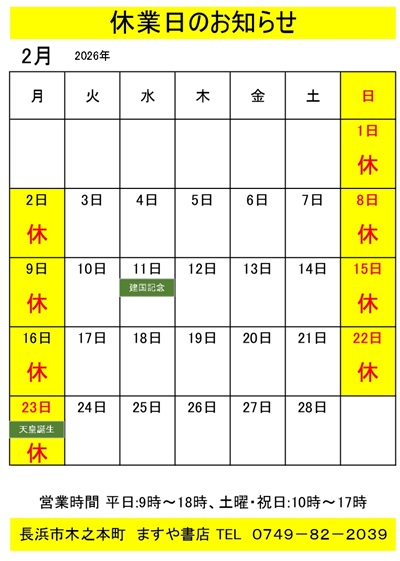2026年2月の営業案内